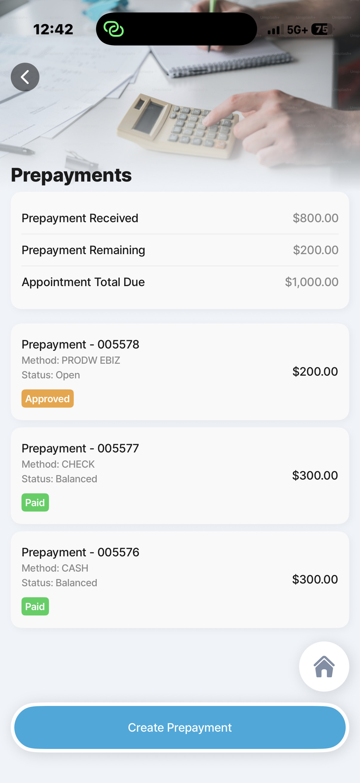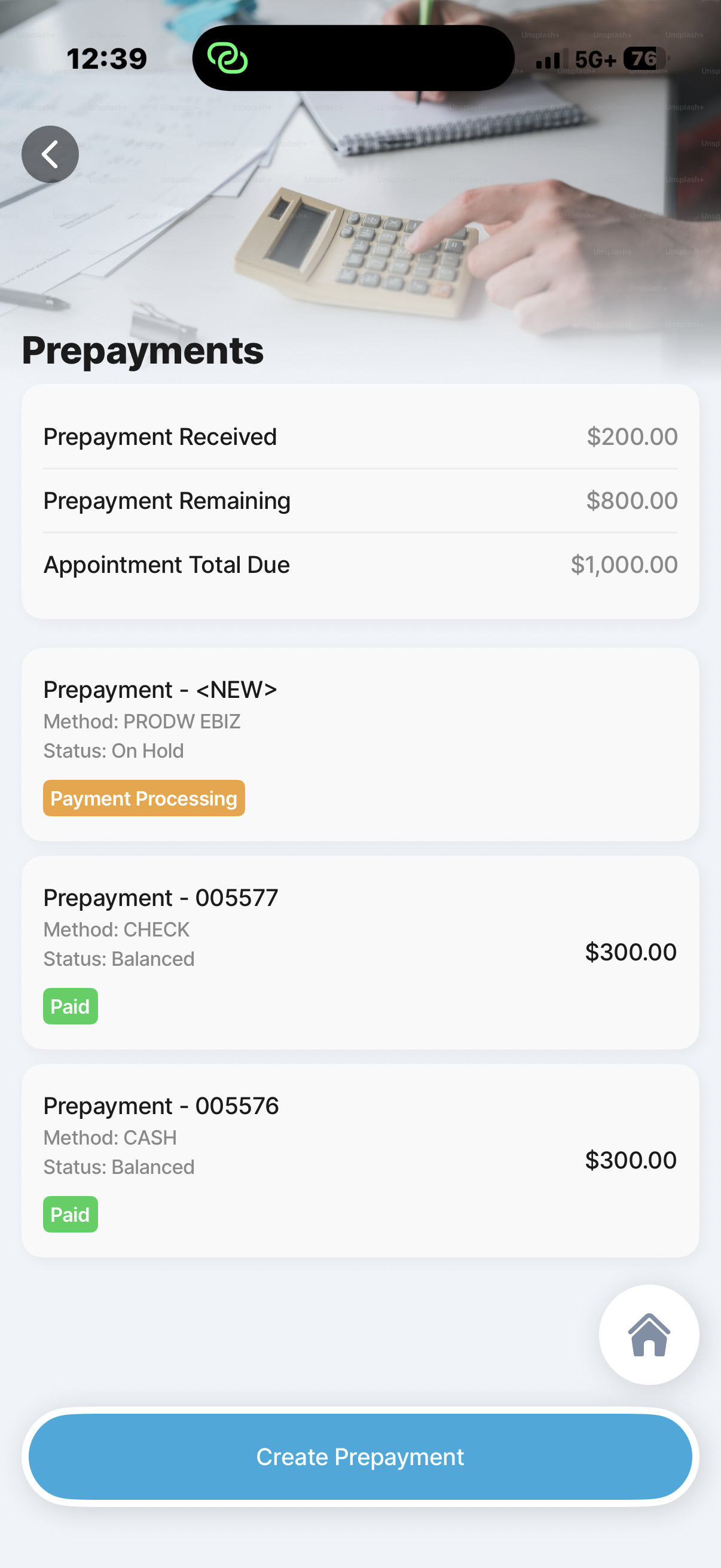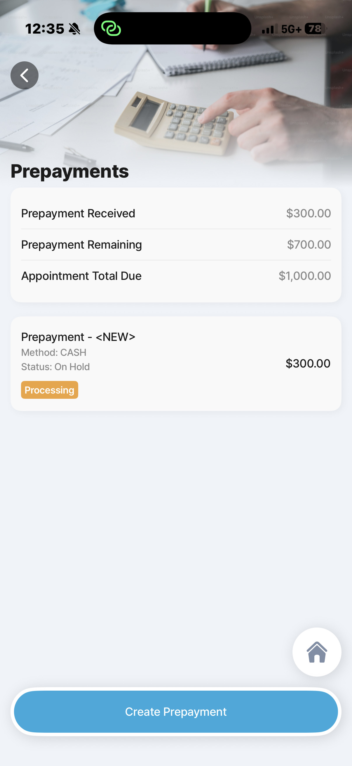 Support technician collection of pre-payments on the work order in v1 and keep estimate print or email actions close at hand.
